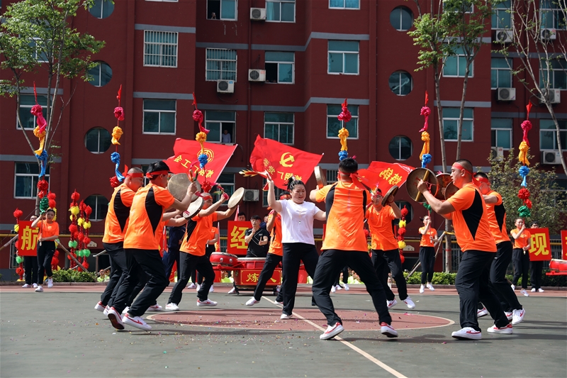 聲聲鑼鼓催人奮進,多彩的花桿祝福美好生活。展演的一線職工個個精神抖擻,多姿多彩的展演震撼著鋼城的角角落落。儲運中心展演的鑼鼓《鐵軍催征》表現了廣大職工自強不息,奮起直追,銳不可當的精神風貌;能源檢計量中心《颯鼓勁鈸》柔中帶剛、鏗鏘有力,彰顯巾幗風采;軋鋼廠《軋鋼工的一天》節奏緊湊、爭分奪秒,更顯朝氣蓬勃;煉鋼廠《鼓書韶華》大氣磅礴、異曲同工,渾厚而剛猛;而煉鐵廠《龍嘯九重天》穿越古今、夢回大唐,氣勢如虹九重天;綜合服務公司和機關聯隊《歡騰的秧歌》更是別樣風采,柔美妖艷、舞姿輕盈,婀娜多姿顯情懷。