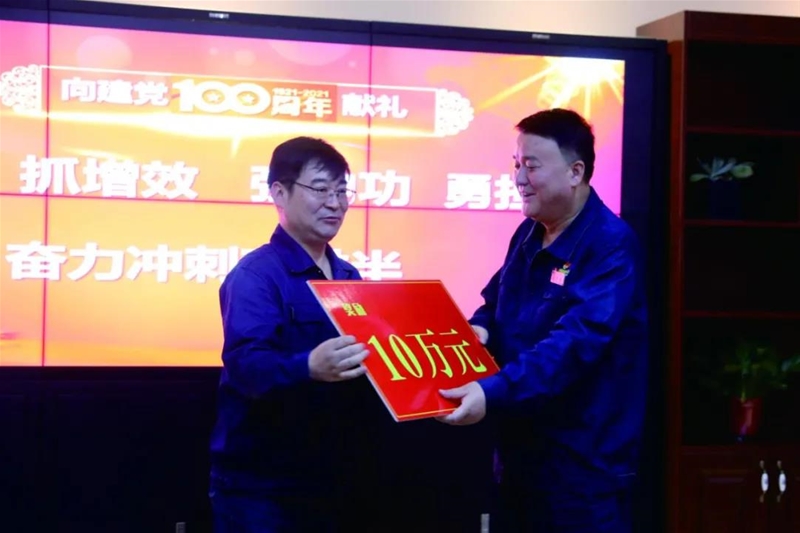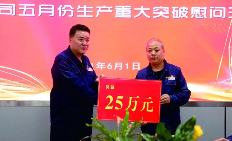 公司黨委書記、董事長陳驍向各單位發放了生產重大突破和服務保障獎勵。