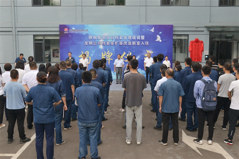 7月22日,陜鋼集團(tuán)項(xiàng)目檔案管理培訓(xùn)暨龍鋼公司檔案室擴(kuò)容改造新室入住揭牌儀式在龍鋼公司檔案室樓前順利舉行。韓城市檔案局副局長(zhǎng)孫燕、寶山鋼鐵公司檔案咨詢總監(jiān)葛敏、陜西金銀島建筑工程有限公司董事長(zhǎng)張忠潮、陜煤集團(tuán)綜合部業(yè)務(wù)主任張春喜、陜鋼集團(tuán)高級(jí)經(jīng)理張靜等應(yīng)邀參加,龍鋼公司副總經(jīng)理朱元洲及漢鋼公司、龍鋼集團(tuán)、創(chuàng)新研究院以及脫硫提升、煉鋼技術(shù)改造等項(xiàng)目部、施工單位檔案負(fù)責(zé)人參加儀式。