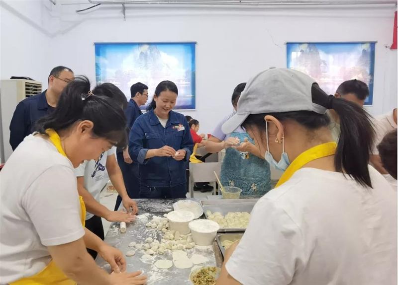 煉鐵廠、綜合服務公司工會聯合組織,發動30余名精干的“娘子軍”,在煉鐵老區職工餐廳義務包餃子,職工在品嘗香噴噴的餃子宴之余,拉家常、慶團圓,溫馨濃情的中秋氛圍讓職工切身感受到了企業大家庭的溫暖。