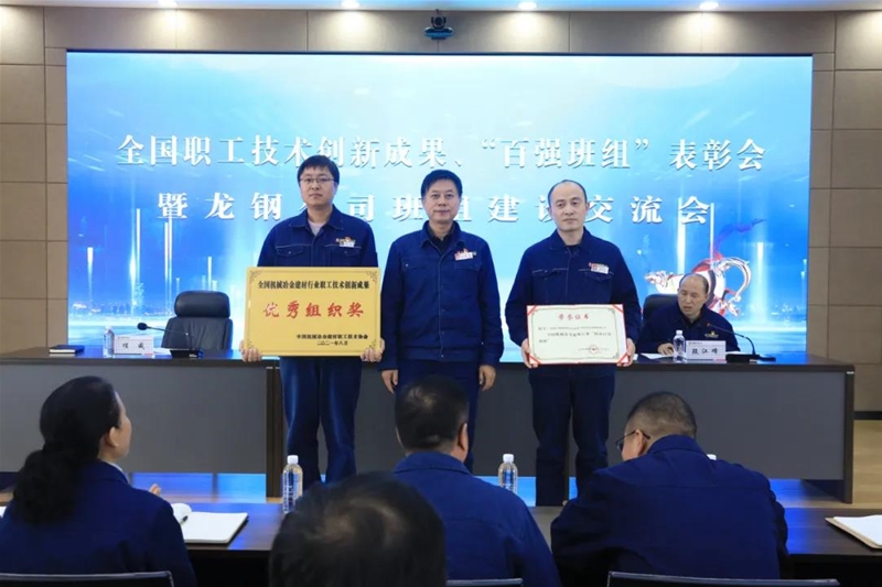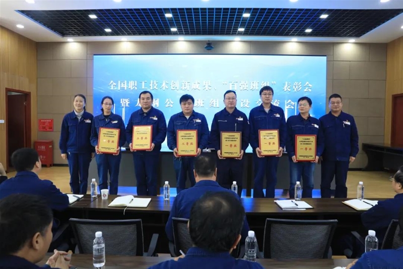 會上宣讀了《關于表彰榮獲全國職工技術創新成果獎及“全國百強班組”集體和個人的決定》,為榮獲全國職工技術創新成果、全國“百強班組”殊榮的先進集體和先進個人頒發了獎牌、證書;對2021年10個優秀班組進行了命名授牌,并表彰了公司慶祝中國共產黨成立100周年職工書畫、攝影系列活動獲獎人員。
