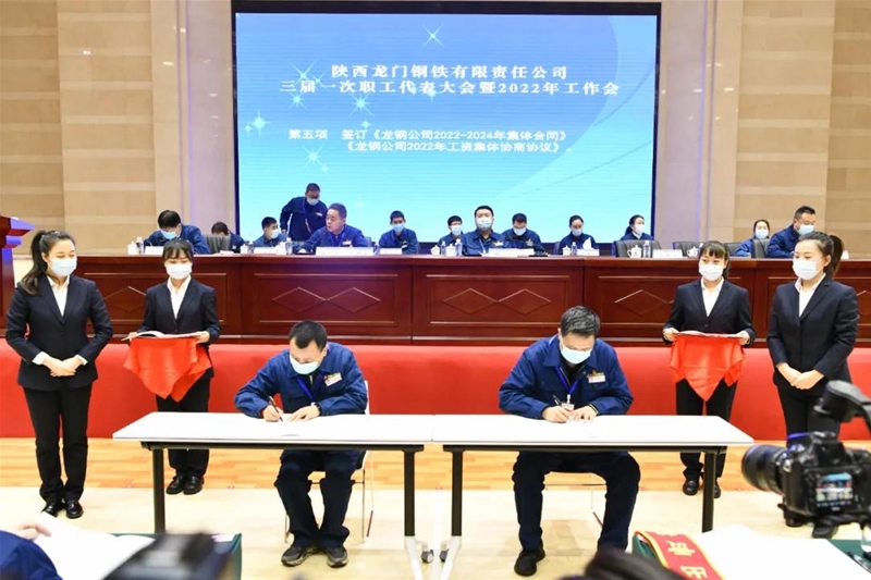 會上簽訂了《龍鋼公司2022-2024年集體合同》《龍鋼公司2022年工資集體協商協議》,以及《2022年度契約化經營業績責任書》《2022年度安全環保目標責任書》。
