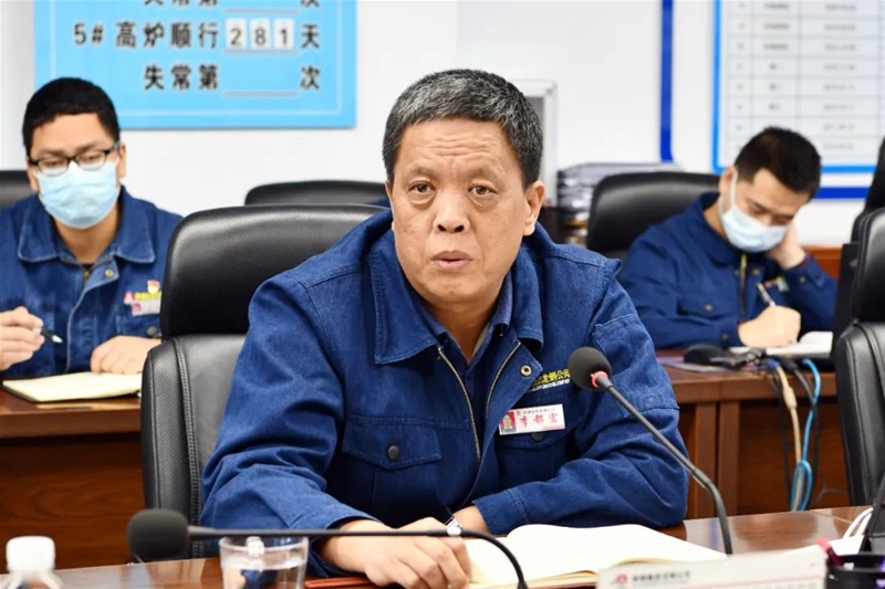 關于生產經營工作,他要求,一是結合年度煤耗使用實際,統籌考慮焦面、長協煤等政策要求及性價比,系統制定煤耗實施規劃方案,在降低煤耗的基礎上,為企業降本注入新動力;二是根據近期生產組織模式,提高燒結礦、塊礦配加比例,既要為爐料結構調整創造條件、又要達到降低成本目的;三是以企業效益最大化為核心,動態做好鋼后生產組織模式調整,切實體現廢鋼正貢獻、正效益;四是對標兄弟單位鐵鋼成本差,做好原燃料和產成品使用計劃,縮小與行業先進指標的差距;五是盡快落實轉爐降罩措施,修訂完善以熱值為核心的考核評價體系,提高煤氣質量、提升煤氣回收率;六是籌劃好系統檢修工作。