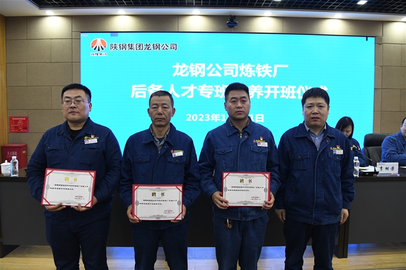 儀式上,宣讀了《煉鐵廠后備人才培養專班實施方案》,學習了視頻《梯隊建設與團隊執行》,專班班主任、學員代表進行了表態發言。同時為三名專班班主任頒發了聘書。