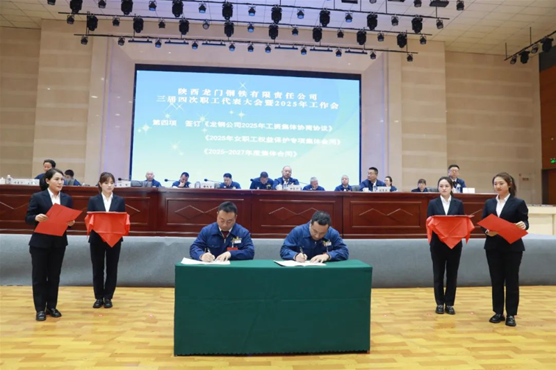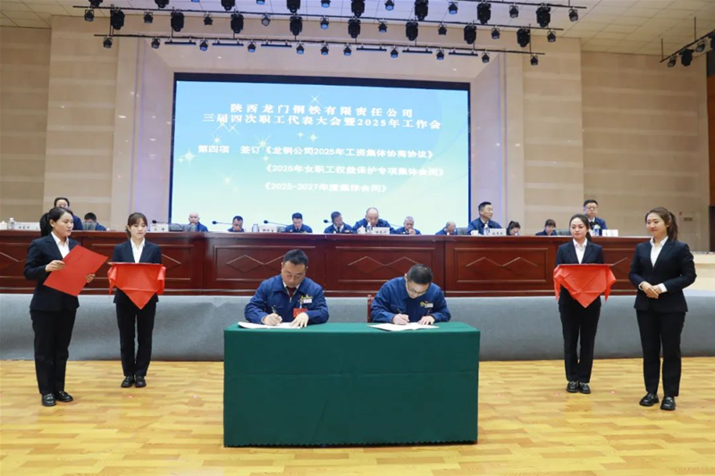 會上簽訂了《龍鋼公司2025年工資集體協(xié)商協(xié)議》《2025年女職工權(quán)益保護專項集體合同》《2025—2027年度集體合同》《2025年經(jīng)營目標責任書》《2025年安全環(huán)保目標責任書》。