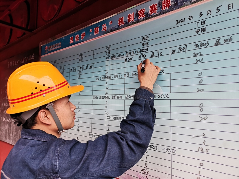 圍繞“雙目標”任務,從全系統、全工序出發,制定時間表、任務圖,分步分階段狠抓落實,嚴格控制工序時間,爭分奪秒,提高生產緊密度,以時間換效率,以效率換效益,充分發揮新區低消耗、低成本優勢,確保全年任務目標順利實現。成立成本小組,對成本日、周、月統計報表設置預警值,對成本完成情況進行實時監控,對超出預警值的項目,制定整改措施,將問題消滅在萌芽狀態。同時深推“智能化煉鋼”,實現鐵水重量、溫度、成分、鋼水成分數據的自動采集及管理,對整個冶煉過程的跟蹤及監控數據形成了自動采集,并根據轉爐主原料及冶煉目標信息,通過靜態模型自動計算當前爐次冶煉所需吹氧量和各輔料加入量及吹煉模式,有效提高轉爐生產節奏、穩定性和鋼水質量,實現轉爐煉鋼全過程自動化。