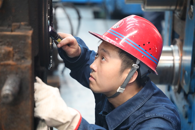 為保證生產(chǎn)順行,加熱爐工長(zhǎng)梁磊與高溫進(jìn)行搏斗,對(duì)軟水設(shè)備閥門進(jìn)行復(fù)檢。