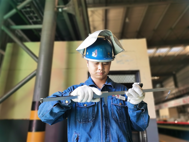 剛剛與700多度的鋼卷打完交道的質(zhì)檢工強(qiáng)宏博,在50℃的環(huán)境中對(duì)測(cè)量結(jié)果進(jìn)行準(zhǔn)確判斷,把好產(chǎn)品質(zhì)量每一道關(guān)口。