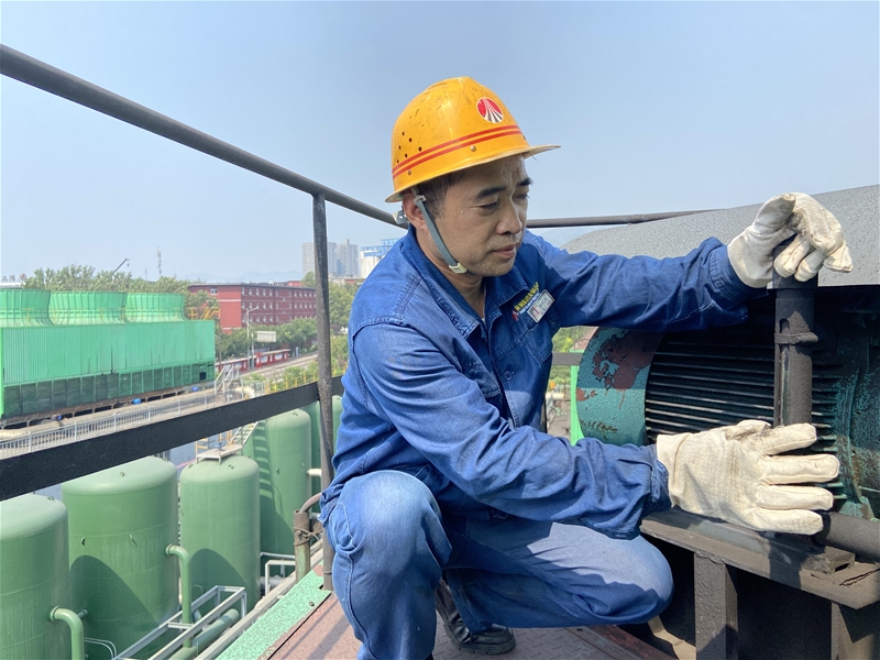 高達(dá)15米的冷卻塔塔頂,安全員楊利民正在對(duì)冷卻塔減速機(jī)油位進(jìn)行檢查,他用專注與敬業(yè)護(hù)航設(shè)備順行,守護(hù)員工健康。