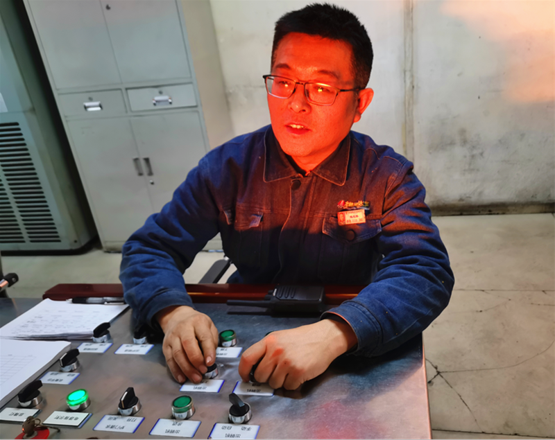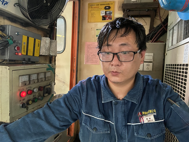 在板帶作業(yè)區(qū)40℃2CS操作臺(tái)里,操作室外火紅的鋼坯映紅了2CS操作工薛孟波的臉頰,他顧不上炙熱,正全神貫注進(jìn)行出鋼操作,在高溫“蒸拿”房里書寫屬于自己的青春篇章。