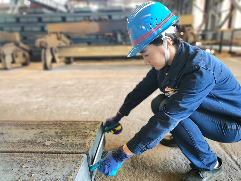 在45℃原料跨,爐號(hào)班長(zhǎng)劉婕以身作則,堅(jiān)持做好鋼坯測(cè)量工作,為身邊的爐號(hào)工樹立榜樣,在安全生產(chǎn)中發(fā)揮半邊天作用。