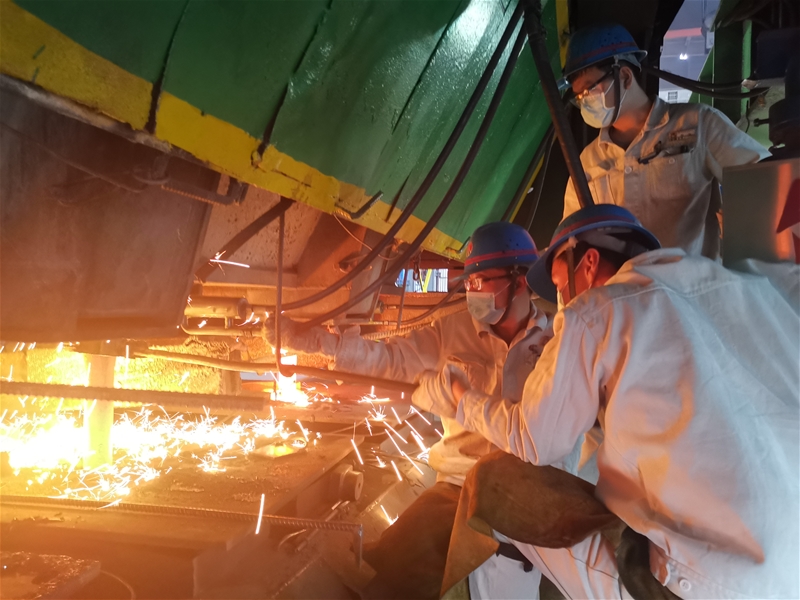該單位充分發揮科技創新,專業引領作用,緊盯挖潛增效、工藝優化和指標提升,大力宣貫“人人是主體,崗崗是平臺”的思想,鼓勵自主創新創效,有序開展“一計一策一事”、創新創效等攻關活動,增加人員參與度,集智聚力。建立不同合金價格下的合金優化體系,形成硅錳鈮釩、硅錳釩氮、微氮釩、微氮鈮四大合金優化系列,緊抓市場行情,結合不同廢鋼料型的特點及加入后對轉爐操作的影響,通過大數據核算,建立廢鋼效益測算表和不同噸位入爐廢鋼的最佳配比控制模式,指導廢鋼進購。對熔劑進行綜合評定,構建新形勢下“經濟冶煉”模式,加快推進煉鋼自動化,將轉爐自動化冶煉、連鑄無人化澆鑄、鋼坯目視化定重、自動化推鋼、高效連鑄、廢鋼智慧管控、熔融金屬“物防”技術研究等項目重點推進,強化自身硬實力,打造“禹龍”品牌新名片。2020年,馮建斌省級大師工作室榮獲“全國機冶建材行業示范性創新工作室”;5#連鑄機推鋼班榮獲 “全國工人先鋒號”。