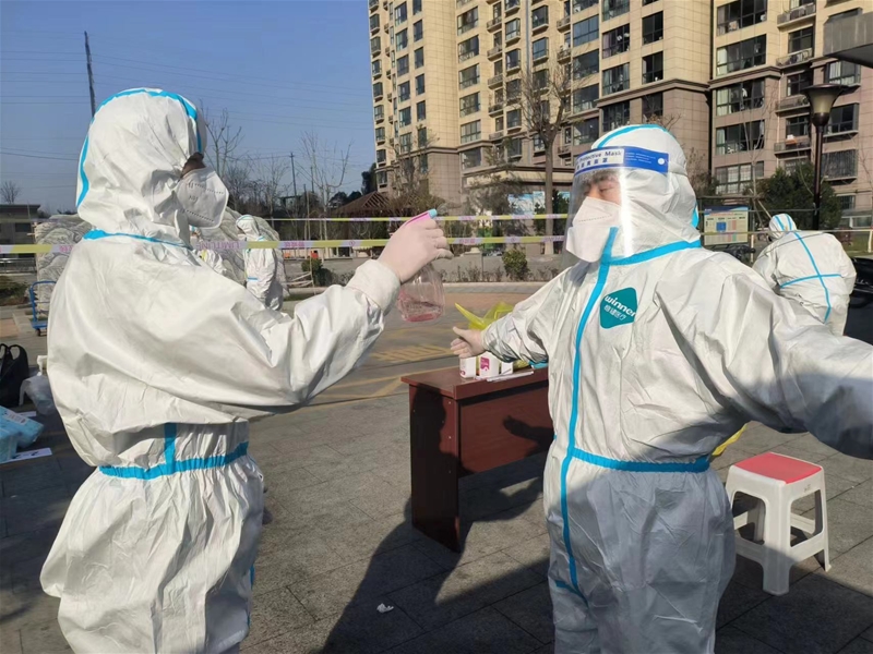 圖四:同晨妮:我的職責是早上6:00開始將核酸管的條碼貼好,做好核酸檢測前準備工作;6:30開始協(xié)助醫(yī)護人員做核酸,維護隊伍秩序;10:30核酸結束后,收拾清理核酸垃圾,將警戒帶及桌凳轉移到庫房,核酸檢測完對接收的隔離區(qū)域的物品及物資進行分類消殺和轉移,并幫助隔離住戶購買天然氣等,配合隔離區(qū)域做好防護工作。