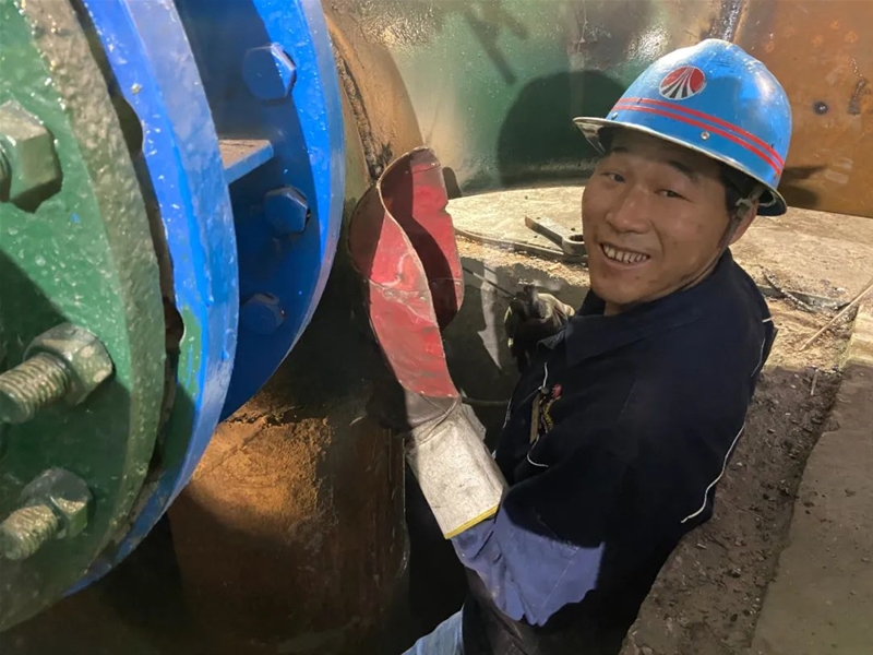 在高線循環泵房內,只見進水主管道一角弧光閃耀、焊花飛濺,卻不見人影,走近一看,原來焊工梁曉鋒正蜷縮在管道的縫隙中進行管道焊接作業?此坪唵蔚暮附幼鳂I,實則不易,由于空間狹小,身高一米八的他在縱橫交錯的管道中不斷變換著姿勢,時而仰面、時而下蹲、時而平躺,起弧、運條、點焊、收尾……焊把在他的手中飛舞,美麗的弧光映紅了他的臉龐。面對一道道完美的焊縫,他臉上露出了滿意的笑容。他抖了抖麻木的腿腳,直了直酸痛的腰背,然后又投入到另一項縫隙焊接工作中……