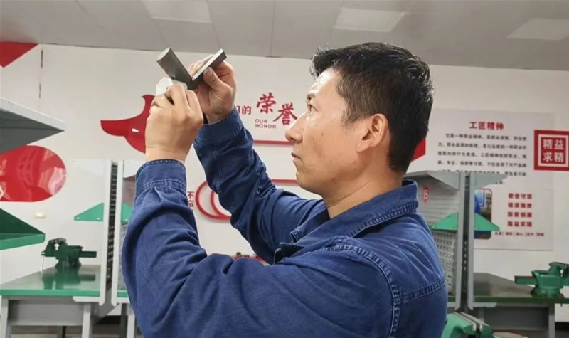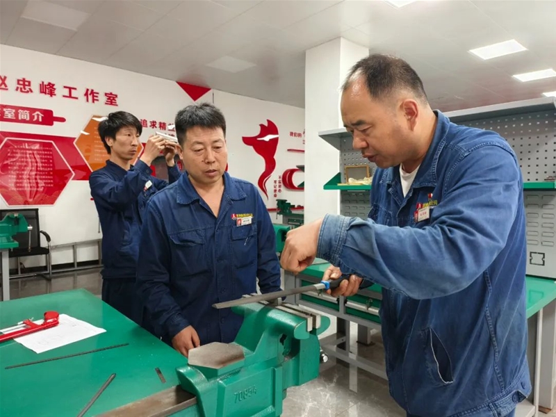 “此次比賽大家在打磨過程中一定要精準計算,將誤差降低在正負0.1mm之間……”在“操檢合一”鉗工技術比武現場,評委趙忠峰正為學員現場講解比賽要領。