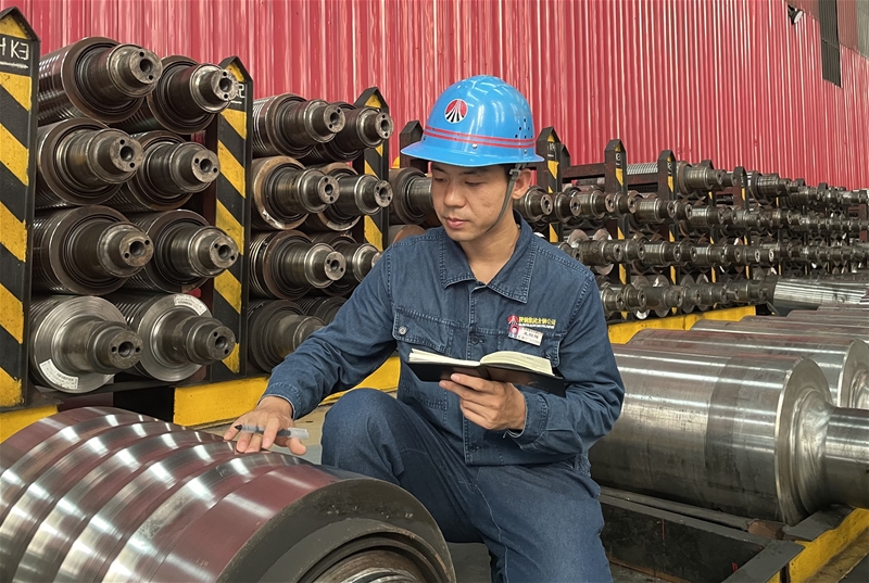 面對理論知識和業務技能的不足,他沒有氣餒,給自己定下目標,從最基礎的軋制原理跟工藝流程學起。為打牢理論基礎,他利用工作間隙自學業務書籍,抓住每一次換輥機會,比對總結設備狀態,跟班向老師傅們學習備輥、調整輥縫及軋輥位置的“獨門絕技”,手套磨破了一副又一副,扳手轉動了一次又一次,終于練就了“眼、心、手”合一的軋制技能,并根據生產實際,歸納整理出一套溫度控制、軋制速度、軋機負荷等重要參數的“錦囊冊”。他在勤學苦練中成就了自我。