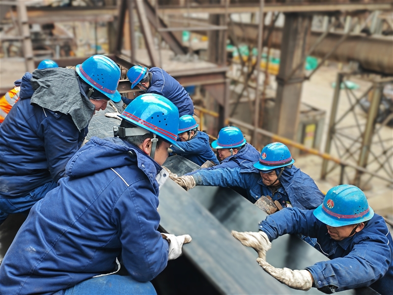 一大清早,冬日的朝陽還未完全從云層中舒展開來,清冽的寒風從身邊呼嘯而過,凍得人瑟瑟發抖。龍鋼公司煉鐵4#高爐卻一片熱火朝天的景象。一群不怕苦、不服輸的檢修人,整裝待發,拉開了一天忙碌的檢修工作序幕……