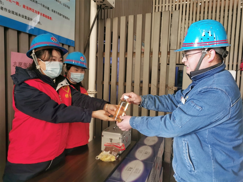 “熱騰騰的姜糖水,喝點暖暖身。”該單位分別在爐臺、爐頂及熱風爐區域設立志愿服務站,精心為參檢人員熬制“暖心姜糖水”,為檢修做好后勤保障。