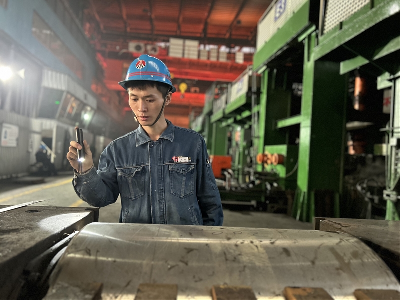 好在卜丹有棒材生產(chǎn)的工藝操作基礎(chǔ),看著師傅操作,他一邊和棒材生產(chǎn)工藝操作進(jìn)行對(duì)比,找不同和相同;一邊模仿師傅操作,無論是換輥還是生產(chǎn)操作,他都認(rèn)真對(duì)待。同時(shí),不放過任何一次學(xué)習(xí)的機(jī)會(huì),不管是師傅、班長還是工長,只要誰有空,誰就成為他“窮追不舍”的對(duì)象,被他多次打破砂鍋問到底的工長說:“看到卜丹鍥而不舍的學(xué)習(xí)勁頭,很感動(dòng),也樂意傾囊相授。”在師傅的教導(dǎo)下,他憑借不懈的努力和刻苦學(xué)習(xí),學(xué)會(huì)了換輥和停開機(jī)的日常操作。如今,他已經(jīng)熟練掌握了帶鋼設(shè)備的操作和維護(hù)技能,成為一名優(yōu)秀的帶鋼粗軋操作工,也成為新工心中“最厲害”的師傅。