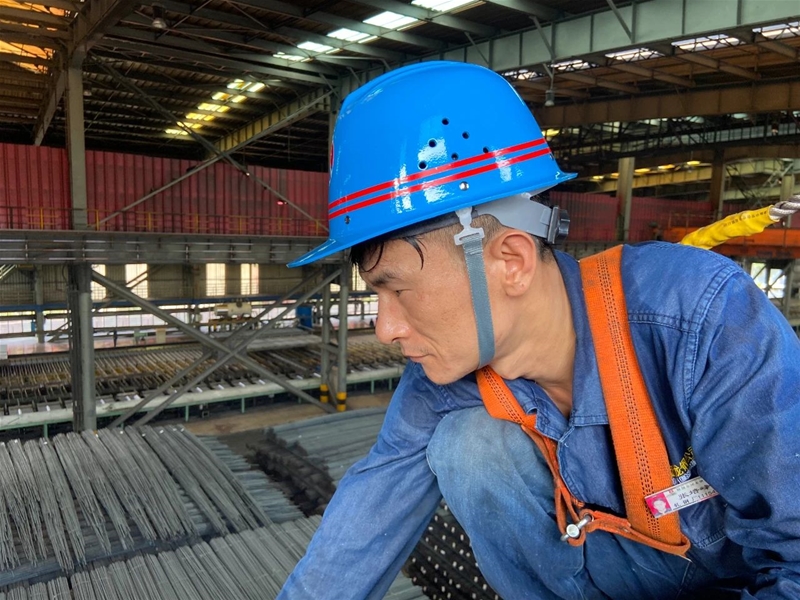 走進軋鋼生產線,一股熱浪迎面而來。距離軋線20米的高空,剛剛完成車輛點檢的趙正正駕駛天車忙碌地進行鋼坯入庫工作,起吊、穩鉤、下落動作一氣呵成,嫻熟而輕巧,在進行鋼坯碼垛作業時,他不到10分鐘便完成一車原料的吊運擺放。每次鋼坯碼垛,他都提前測算出前后左右距離,精確放置,將軍營中疊“豆腐塊”的嚴謹精神傳承到崗位工作中。經他擺放的鋼坯垛位總是方方正正、橫平豎直,令人眼前一亮。炙烤的環境,絲毫沒有影響到他。趙正沉著冷靜,爭分奪秒對車輛進行點檢、維護,往往調整一個制動器下來,就已經汗流浹背。而他認真堅定的目光,是對崗位最滾燙的熱愛。