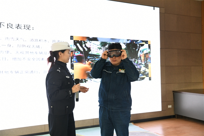 此次培訓邀請韓城市公安局交警中隊資深民警進行授課。她從交通事故數據和視頻切入,結合實際案例,講解事故危害,并進行事故成因與違法后果剖析,以案說法深入淺出地解讀了相關交通安全法規(guī),提升了全員遵章守法和依法安全行車意識。同時,她結合安全行車實際,利用事故展板、現(xiàn)場VR眼鏡模擬醉酒駕駛等方式與參培人員互動,讓參培人員通過現(xiàn)場模擬掌握冬季行車安全隱患,特別是雨雪天控距、霧天用燈等安全駕駛技巧與應急處理方法,進一步鞏固加深了駕駛員對交通安全的理解,普及了交通安全知識。培訓最后,還進行了知識測試,以考促學,鞏固學習成效。
