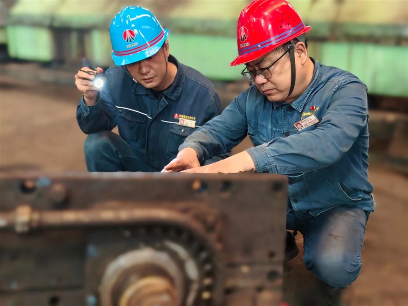 精軋機旁,鉗工責任技師丁軍平突然蹲下身,將耳朵貼在設備上:“聽,這聲音不對,增速箱鬧毛病了。”徒弟常晨湊過去聽了半天,一臉茫然:“師傅,我咋聽不出來?”老丁笑著說:“這就跟聽人咳嗽判斷病情一樣,干久了自然就有感覺。”說著,他掏出一個翻得卷邊的筆記本,里面記滿了各種設備異響的判斷方法。