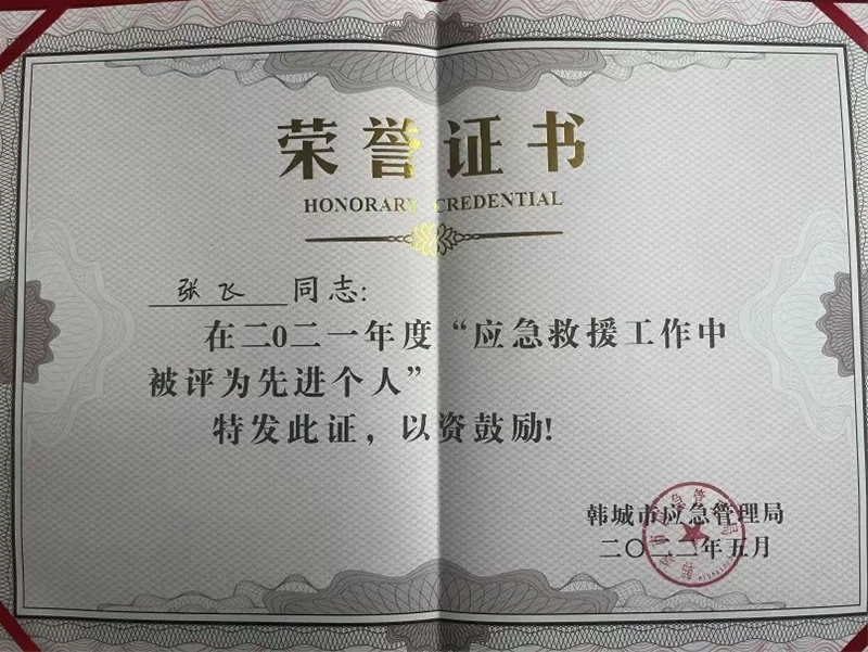 5月27日,韓城市應(yīng)急管理系統(tǒng)先進(jìn)集體和先進(jìn)工作者表彰大會(huì)在韓城市應(yīng)急管理局舉行,龍鋼公司應(yīng)急救援隊(duì)獲得“韓城市2021年度應(yīng)急救援隊(duì)伍先進(jìn)單位”,并現(xiàn)場(chǎng)授予“市級(jí)應(yīng)急救援隊(duì)伍”獎(jiǎng)牌,公司氣體防護(hù)中心副主任張飛被授予“韓城市2021年度應(yīng)急救援工作先進(jìn)個(gè)人”稱號(hào)。