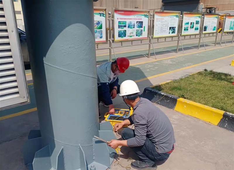 為切實加強夏季防雷工作,保障人員和設備設施安全,截至5月底,韓城市防雷中心專業人員完成了對公司所轄區域生活區、廠區所有建構筑物及廠房、易燃易爆區域共1071處防雷防靜電點的專項安全檢測。