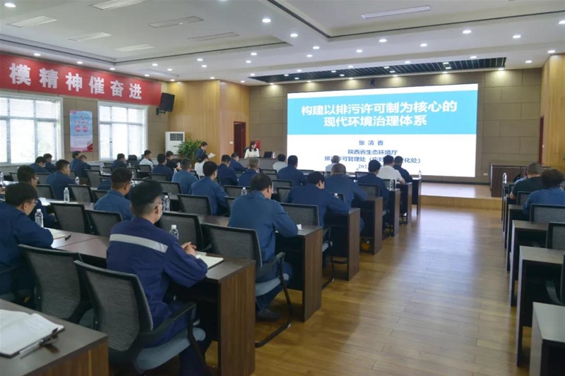 5月28日,公司邀請了陜西省生態環境廳排污許可處(應對氣候變化處)處長張清香進行排污許可專題培訓。韓城市生態環境局總工程師劉立新,公司副總經理、總工程師石自新,公司黨委委員、副總經理馮偉,各單位主管領導、業務人員和相關部門負責人及韓城市生態環境局業務人員、韓城市10余家企業代表參加培訓。