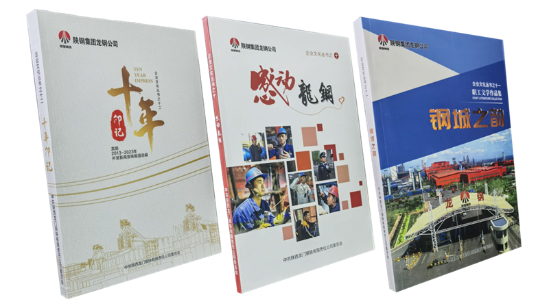 《感動龍鋼》文化叢書匯集了五屆“感動龍鋼”人物的先進事跡,激勵干部職工以榜樣為導向,以先進為追求,在新的征程上勇毅前行,挺起龍鋼奮斗不息的“鋼鐵脊梁”。《鋼城之韻》是繼《鋼花》之后,公司第二部職工文學作品集,分為《鋼城·情歌》《鋼城·抒懷》《生活·經事》《星耀·鋼城》四個篇章,收錄職工文學作品120篇。廣大文藝愛好者,從身邊亮點和生產一線擷取素材,熱情謳歌黨、謳歌祖國、謳歌新時代、謳歌龍鋼的發展成就,展現了新時代龍鋼人激情昂揚的精神面貌。《十年印記》收錄了公司十年來在各類主流媒體刊登的重要新聞報道500篇,展示了公司在各方面工作中的新作為、新成就、新經驗,反映了一線職工的精氣神,講述了龍鋼取得的歷史成就和巨大變化,成為企業的一部“史記”。