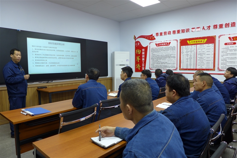 楊軍濤勞模(工匠)創新工作室始終以生產系統創新創造和提質增效為目標,堅持科技創新,積極參與軋鋼工藝改進、新項目實施,聚焦生產“卡脖子”重點、難點問題,大力開展工藝改造、技術革新、小改小革等工作,將創新成果應用于生產實踐中,先后完成“φ14螺四切分軋制”“高線φ12盤螺(圓)新品開發”“棒一直軋”等具有代表性的創新改造項目,對提高“禹龍”品牌市場占有率作出了重要貢獻,為實現鋼后品規效益釋放提供了堅強支撐。同時,該工作室高度關注技術技能人才“傳幫帶”,通過開展“師帶徒”活動,累計培養出軋鋼專業關鍵核心人才30余人,為企業發展增添了后勁活力。