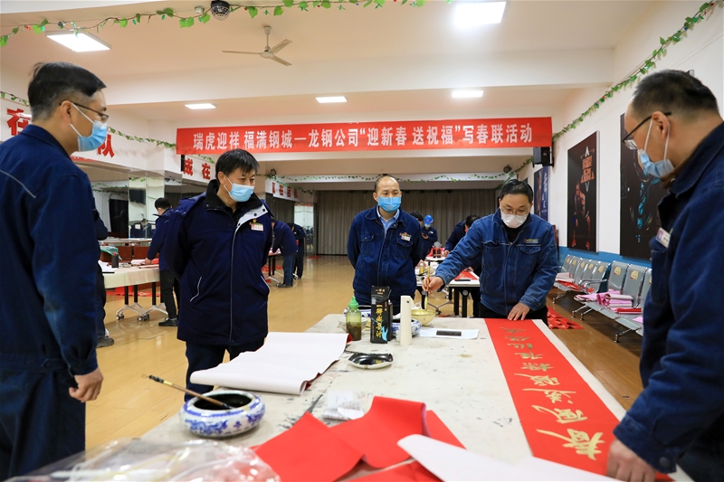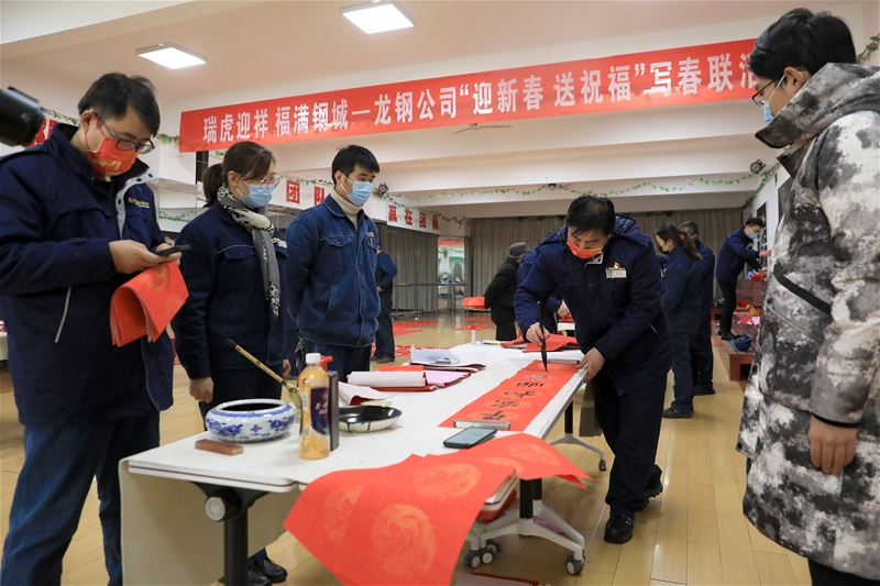 丑去寅來千里錦,牛奔虎嘯九州春。為弘揚中華傳統文化,營造喜慶祥和的節日氛圍,1月18日-20日,由公司工會主辦、書畫協會承辦的“瑞虎迎祥 福滿鋼城”——龍鋼公司“迎新春、送祝福”寫春聯活動在職工活動中心圓滿完成。