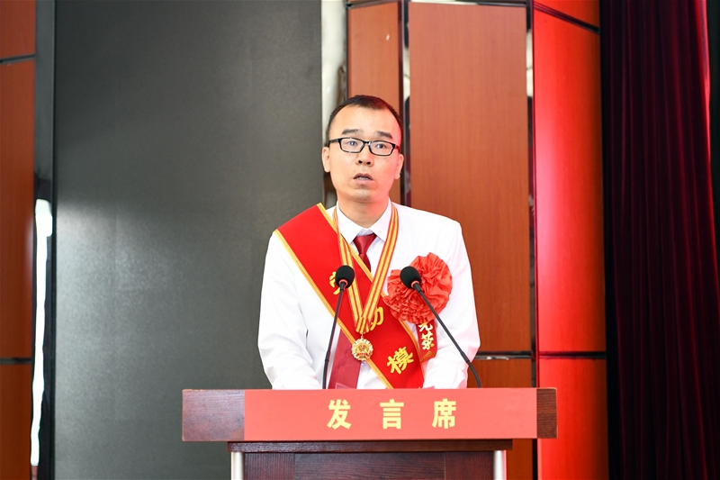 煉鐵廠2#高爐爐長劉甲科代表新一屆獲獎勞模作了表態發言。
