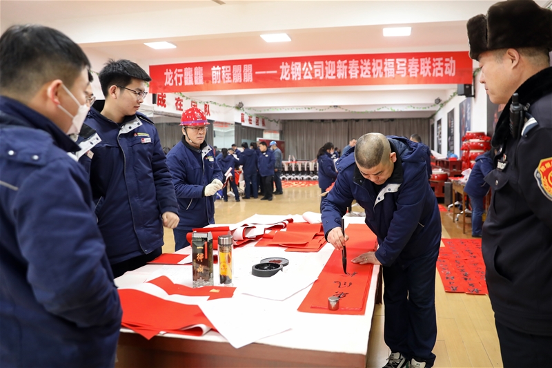 “上聯(lián):龍騰盛世筑夢煉鋼,下聯(lián):破冰前行向春而生,橫批:四季安康”“上聯(lián):憶往昔 全員共奮進(jìn) 攻堅克難創(chuàng)佳績,下聯(lián):看今朝 干部走前列 打贏硬仗立新功,橫批:大展宏圖……”字里行間融入龍鋼人的鋼鐵情懷,充分表達(dá)了干部職工堅定信心、精誠團(tuán)結(jié)、奮力拼搏的決心,確保新一年公司各項目標(biāo)任務(wù)再創(chuàng)佳績。