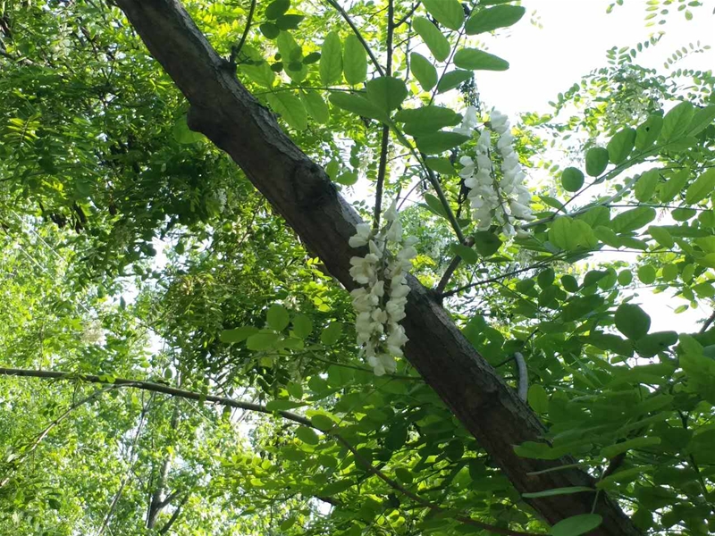 四月正是洋槐花開的季節,白色花絮在綠蔥蔥的枝葉中競相開放,花香四溢,隨處飄散,整個空氣中都跳動著簡單幸福的味道。