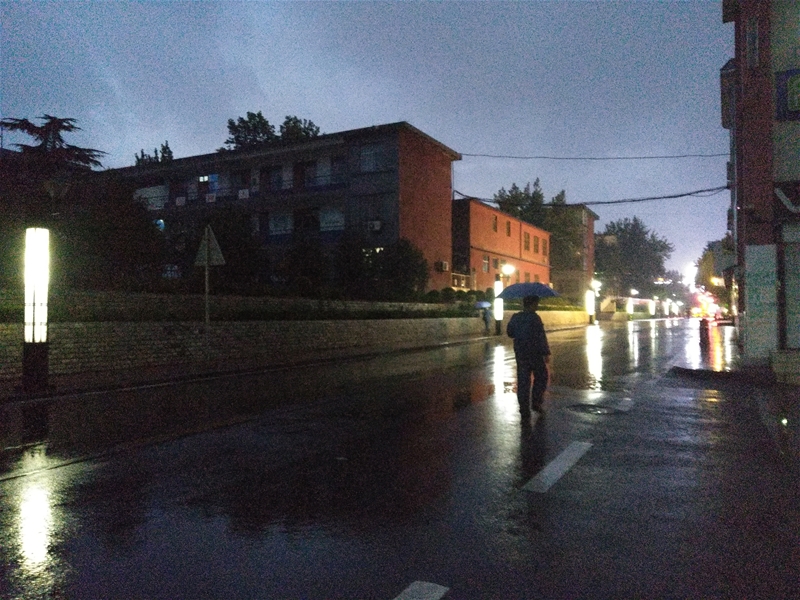 這是難得的一場(chǎng)雨,在躁熱的夏日里連綿不絕,一會(huì)下,一會(huì)又停,斷斷續(xù)續(xù),一陣大,一陣小,一直持續(xù)到晚上。置身于夏雨里的十里鋼城,仔細(xì)找尋蘇軾筆下“水光瀲滟晴方好,山色空蒙雨亦奇”的佳境,卻讓人真切地感受到施肩吳的“天地清涼綠植新,初經(jīng)一雨洗諸塵”。在路燈的照射下,小花園的植被、草坪被夏雨洗刷的綠中透亮,隨風(fēng)搖曳;雨中的煉鐵高爐,經(jīng)雨水的沖洗,更加挺拔俊俏,還原了它鋼鐵般明亮的色彩;料場(chǎng)里堆起來(lái)的礦石、礦粉,被雨水沖走了外在的灰塵,露出黝黑發(fā)亮的皮膚,等待著生命的再一次升華。