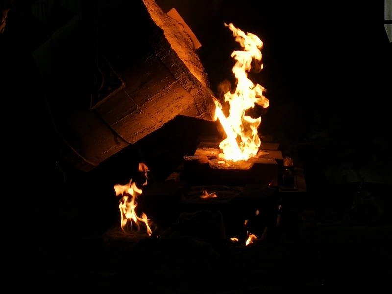 鐵水奔流鋼花飛濺