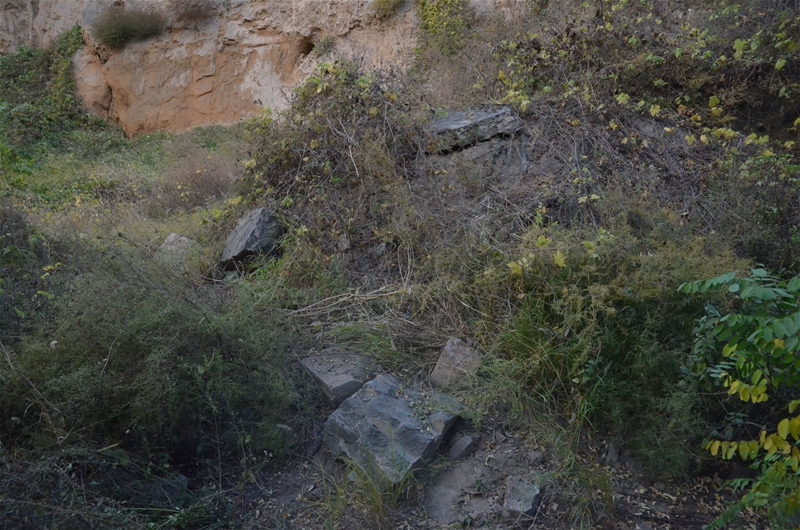 幸遇熱心村民協助,于荒草野樹中搜尋,辨識到當年職工所住窯洞三孔,及爐基、冷卻水管,蓄水池、食堂等遺跡。
