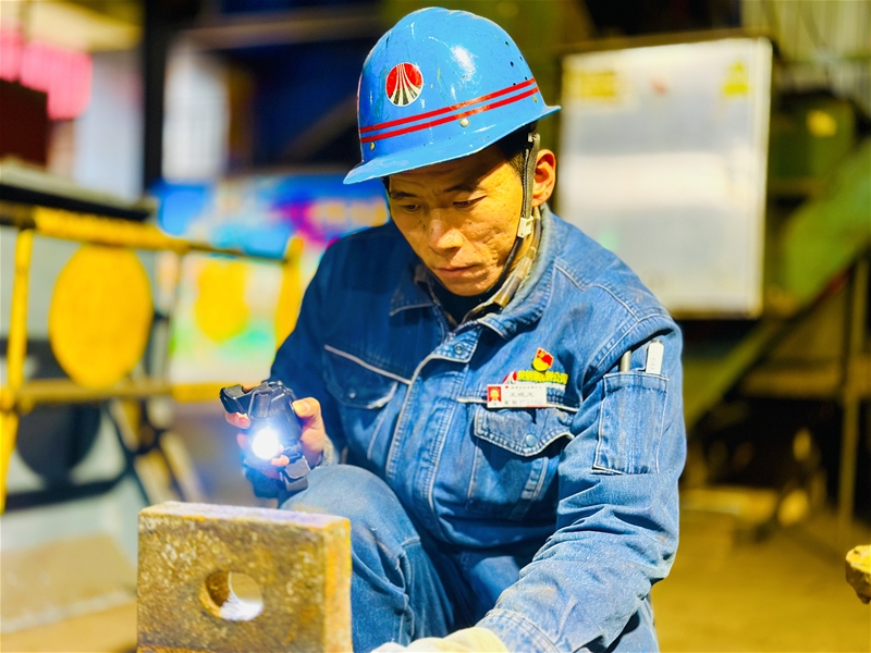 狹小且悶熱的設備縫隙里,維修工騰轉挪移、身形靈活。他們用割槍割除廢舊螺絲、對拉矯機冷鋼清理、對水油路進行疏通。現場48度的高溫下,一抹抹“勇士藍”在汗水中與時間賽跑,一頭汗水、滿臉笑容,是他們的真實寫照。