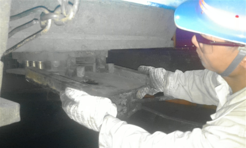 項目簡介:5#機定重設備投入使用以來,由于頻繁起落稱重,液壓連接絲桿自轉一方面造成傳感器線路繞圈拉扯,使得稱重數(shù)據(jù)不穩(wěn),影響稱重作業(yè),另一方面造成連接桿脫絲,傳感器掉落、損壞。使用∮14或16鋼筋長15cm左右,做為吊框復位手柄,長30cm角鐵做為復位卡槽;將2根角鐵平行與定重臺架焊接,兩根角鐵相隔4cm左右,將鋼筋一頭完全放入卡槽內部,另一頭垂直與定重臺架,水平焊接到定重連接絲桿上。稱重過程中絲桿自轉時,鋼筋左右擺動,通過卡槽的阻擋達到阻止其自轉的目的(如左圖1)。在全公司范圍內開展降本增效活動,精打細算的成本意識,我們對該裝置構造進行了又一次優(yōu)化,利用吊框卡槽,使用“Z”字形直角鋼筋直接焊接到定重連接絲桿上,達到了阻止連接絲桿自轉的目的。大大減少了人員焊接作業(yè),節(jié)省了鋼鐵物料,提高了檢修效率。目前5#機8個流已經(jīng)全部安裝,截至現(xiàn)在未發(fā)生傳感器掉落的情況,同時稱重數(shù)據(jù)穩(wěn)定,定重合格率由65%提高到72%(依據(jù)煉鋼定重數(shù)據(jù)集數(shù)據(jù))。為軋鋼廠提供統(tǒng)一重量標準的鋼坯,使其定尺率由得到了穩(wěn)定、提升,減少了坯料浪費,為公司降本增效做出了重大貢獻。
