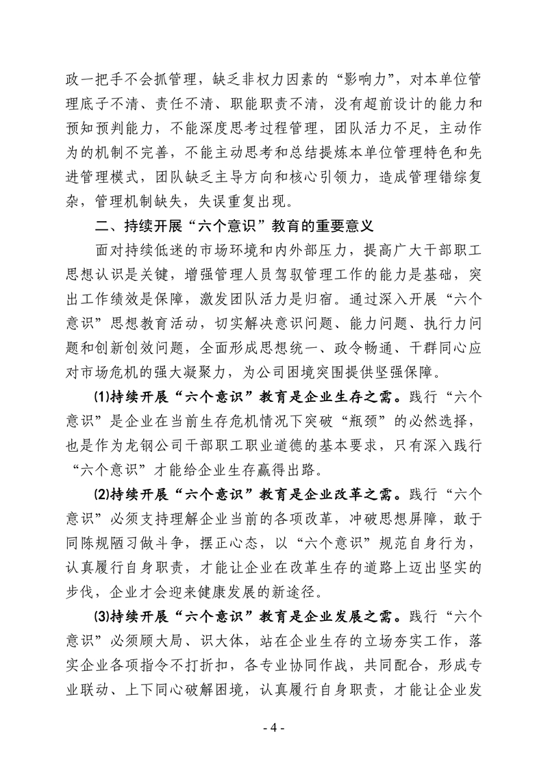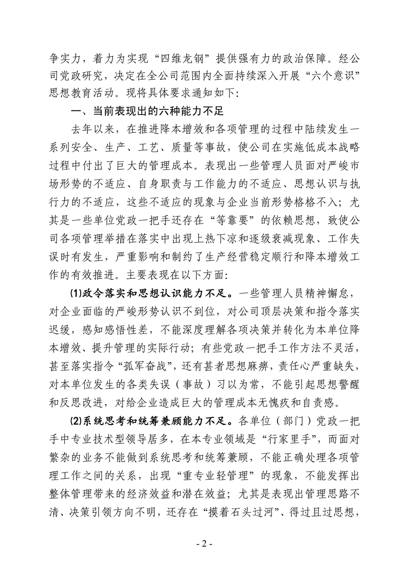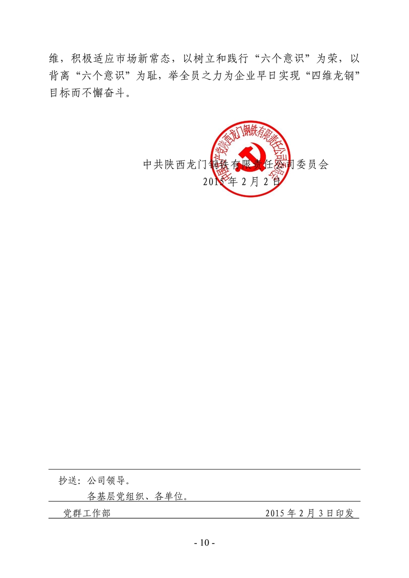 中共陜西龍門鋼鐵有限責(zé)任公司委員會(huì) 關(guān)于深入開(kāi)展“六個(gè)意識(shí)”思想教育活動(dòng)的通知