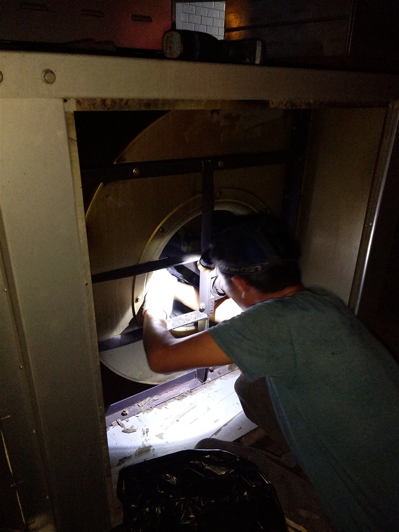 7月15日,晚上10點15分,最后一波客人離開賓館,煙道清洗人員立即對煙道及煙罩采取冷卻處理。12點鐘,煙道清洗工作正常開始,賓館廚師、保障部人員顧不上一天的勞累,積極參與到煙道的清洗工作中,拆卸煙罩擋板、風機葉片,引導清洗人員對整個油煙管道進行認真、細致的清洗。今年盛夏的高溫來得異常猛烈,此刻的地面正散發著蒸籠一樣的熱氣,汗水浸濕了在露天地拆除油煙管道的他們的衣衫和脖子上的毛巾,煙道里那種由丙烯醛、苯、甲醛、巴豆醛等有害物質組成的氣味夾雜著地面散發的熱浪,直逼得人透不過氣來,在煙道跟前待上十幾分鐘,就要在空氣好的地方稍作休息,但是他們沒有一個喊停的,主動輪流操作,確保各種清洗設備都能按照標準得到清洗。為了不影響第二天的正常接待,凌晨3點半又要開始對正在清洗的煙道進行安裝,為5點鐘早餐做好準備。