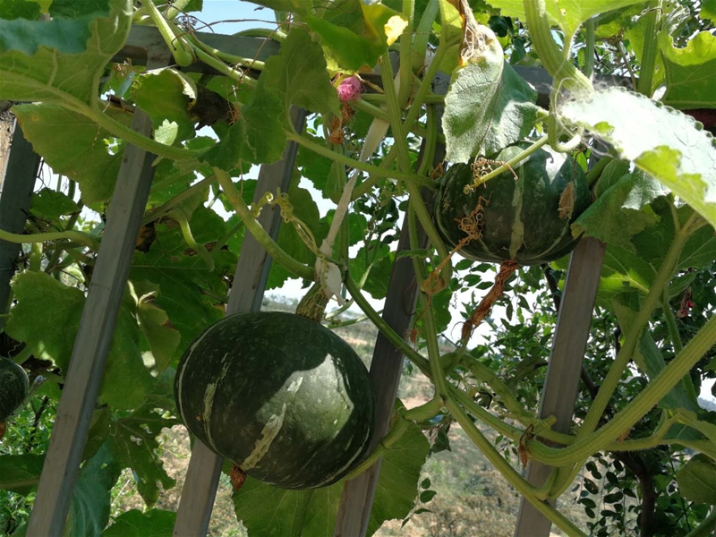 來到家里的后院,剛跨過后院門就看到爺爺種的各種花草,在遠一些是這個季節的蔬菜。從記事起爺爺就愛種花草,今年也一樣,葫蘆藤上結滿了小葫蘆,隨風擺動,就像是一群葫蘆娃在向我打招呼,情不自禁的摘下一個洗了洗讓孩子玩。記得小時候自己偷偷的摘了個葫蘆去和同伴們玩,回來讓爺爺一頓好罵。后院的大部分地方爺爺都種上了菜,大片的辣椒,幾個黃瓜騰,西紅柿,茄子和豆角……看著這些新鮮綠色的食材我覺得我胃口大開。
