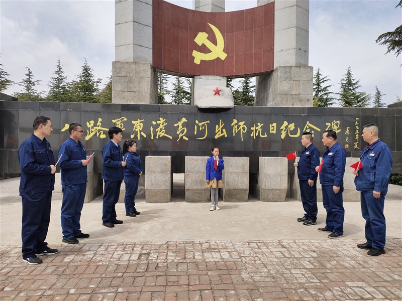 “八路軍115師1937年從這里東渡黃河,首開八路軍抗日先河。今天我們來到這里,學(xué)習(xí)歷史,緬懷先烈……”在八路軍東渡黃河出師抗日紀(jì)念碑前,連一黨支部書記雷會(huì)林講道。