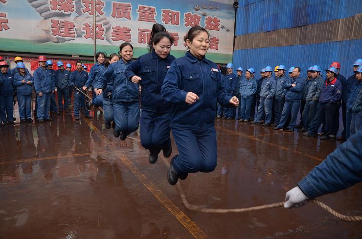 燒結廠在聚力文化廣場舉行了一場趣味橫生的游藝活動。扭秧歌、花樣跳繩、定點踢毽、兔子舞,節目豐富多彩、鼓掌聲此起彼伏,不僅展示了女工的靚麗風采,更加凸顯了團隊精神。