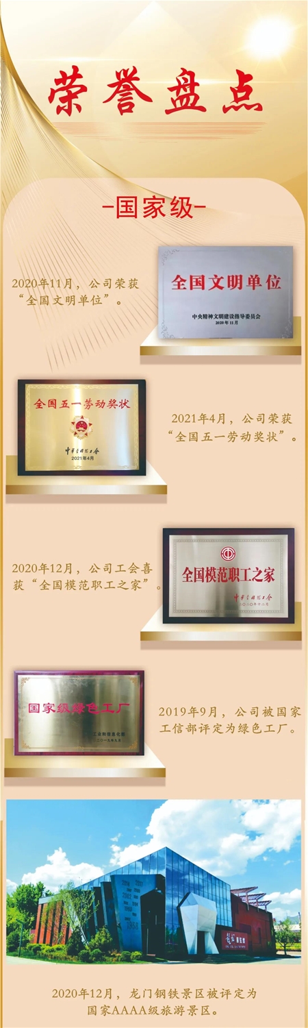 榮譽盤點是邁向美好未來的一次能量積蓄,新時代是奮斗者的時代。讓我們初心不改,砥礪前行,全身心投入到落實集團“2.26”黨委(擴大)會議精神上來,集中精力辦好自己的事,干群同心奮戰(zhàn)“雙目標”、夯實“雙掛鉤”、嚴格“四類層”,始終牢記“感恩、知責、律己、有為”八字要求,扎實踐行“黨建領(lǐng)航、班子引領(lǐng)、干部走在前列”工作機制,扛死肩、硬負責,以龍鋼人的擔當和使命,譜寫更加輝煌的新篇章。